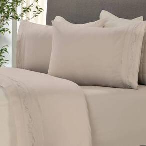 O diferencial está no delicado bordado inglês aplicado no sobre lençol e nas fronhas, que traz elegância e charme à sua cama. Além disso, o lençol com elástico garante praticidade e ajuste perfeito ao colchão.