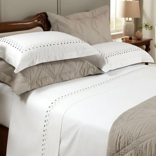 Imagine deitar-se em uma cama digna de hotel cinco estrelas, sentindo a suavidade aveludada do algodão egípcio e a delicadeza do bordado que traz um toque clássico e refinado ao ambiente. O Jogo de Cama Miami não é apenas roupa de cama, é um convite para noites de descanso profundo, onde cada detalhe transmite aconchego, cuidado e bem-estar.