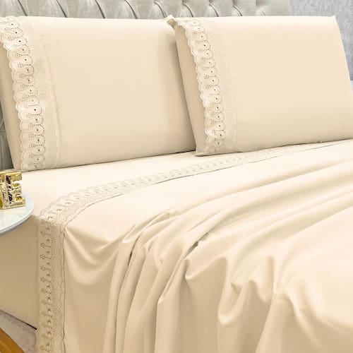 Jogo Cama Box Queen Size Lily 300 fios Bordado Inglês Extra Macio Cor: PALHA
