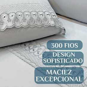 Transforme sua cama em um cenário de requinte e bem-estar com o Jogo de Cama Lily Queen Size 300 fios. Confeccionado em algodão premium, com acabamento em bordado inglês delicado e toque extra macio, ele é a escolha perfeita para quem valoriza conforto e sofisticação.