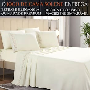 O Jogo de Cama Box Queen Solene 100% Algodão Extra Macio Premium é a escolha ideal para quem busca conforto real, qualidade superior e um toque suave que faz diferença no dia a dia.