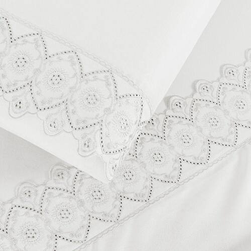 O Jogo de lençol para cama Casal Padrão com 04 peças confeccionado em tecido Micropercal 200 fios, detalhes em bordado inglês na fronha e no lençol de cima. Possui alto padrão de qualidade, proporciona conforto e sofisticação.