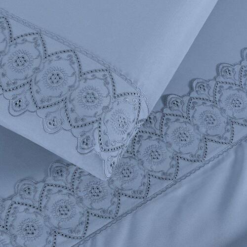 O Jogo de lençol para cama Casal Padrão com 04 peças confeccionado em tecido Micropercal 200 fios, detalhes em bordado inglês na fronha e no lençol de cima. Possui alto padrão de qualidade, proporciona conforto e sofisticação.
