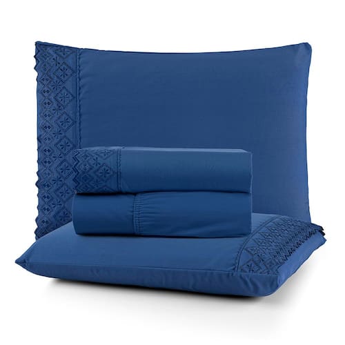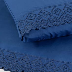 Jogo Cama Casal Cherry Bordado Inglês 4pç 100% Poliéster - Az_Gal - Azul Escuro