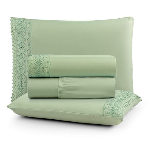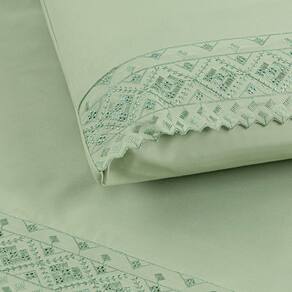 Jogo Cama Casal Cherry Bordado Inglês 4pç 100% Poliéster - Verd_Fol - Verde Claro