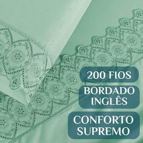 Jogo De Cama Casal Queen London Bordado Inglês 200 Fios 4pç Super Macio NOBLESS Cor: Verde