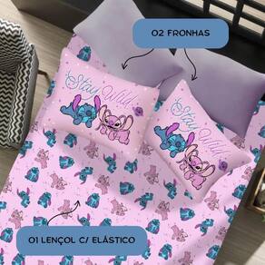 Jogo Cama Casal Stitch Angel Love 3 Pçs com Elástico Algodão Olá, amigas os