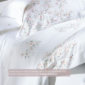 A beleza incomparável da estampa Lovan marca presença com delicadeza e sofisticação. Com flores suaves em tons rosé que seguem um movimento sublime, esse jogo de cama traduz leveza e romantismo. A composição de 100% bambu com 400 fios proporciona um toque surpreendentemente macio, brilho elegante e sensação térmica ideal no verão e aconchego no frio. A Kacyumara mais uma vez entrega um produto que une requinte, conforto e arte em forma de tecido. Para quem valoriza cada detalhe do descanso, Lovan é mais que um jogo de cama, é uma experiência.