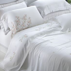 A beleza incomparável da estampa Lovan marca presença com delicadeza e sofisticação. Com flores suaves em tons rosé que seguem um movimento sublime, esse jogo de cama traduz leveza e romantismo. A composição de 100% bambu com 400 fios proporciona um toque surpreendentemente macio, brilho elegante e sensação térmica ideal no verão e aconchego no frio. A Kacyumara mais uma vez entrega um produto que une requinte, conforto e arte em forma de tecido. Para quem valoriza cada detalhe do descanso, Lovan é mais que um jogo de cama, é uma experiência.