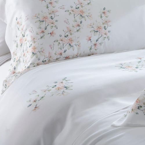 A beleza incomparável da estampa Lovan marca presença com delicadeza e sofisticação. Com flores suaves em tons rosé que seguem um movimento sublime, esse jogo de cama traduz leveza e romantismo. A composição de 100% bambu com 400 fios proporciona um toque surpreendentemente macio, brilho elegante e sensação térmica ideal no verão e aconchego no frio. A Kacyumara mais uma vez entrega um produto que une requinte, conforto e arte em forma de tecido. Para quem valoriza cada detalhe do descanso, Lovan é mais que um jogo de cama, é uma experiência.