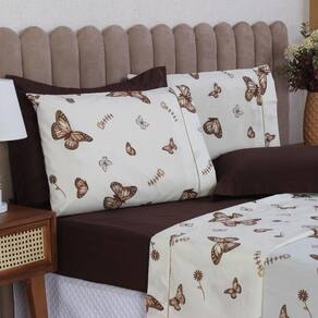 Jogo de Cama King 4p Lençol + Fronha Esmeralda Percal 100% Algodão Cor: Borboleta marrom Mais beleza para o seu dia a dia e conforto para as suas noites de sono.