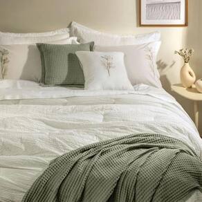 Jogo Cama King + Capa de Almofada Lavínia 200 Fios Karsten Jogo de Cama King com Capa de Almofada 200 Fios 100% Algodão Lavínia Branco Descubra o Jogo de Cama Lavínia King 5 Peças, perfeito para proporcionar conforto ao seu quarto. Confeccionado em 100% algodão com 200 fios, este conjunto oferece uma experiência única: é antipilling, altamente respirável, bem encorpado e hipoalergênico. O jogo inclui um sobre lençol tinto de 2,90m x 2,50m com dobra feita e bainha de 3cm, um lençol com elástico tinto de 1,93m x 2,03m x 40cm que se ajusta perfeitamente ao colchão, duas fronhas tintas 50cm x 70cm com 3 abas de 4cm, e uma capa de almofada de 45cm x 45cm com bordado localizado e acabamento em cordonê nos 4 lados, conferindo um charme extra ao ambiente. Na cor branca com bordados, suas peças de tonalidade neutra harmonizam com diferentes estilos de decoração.