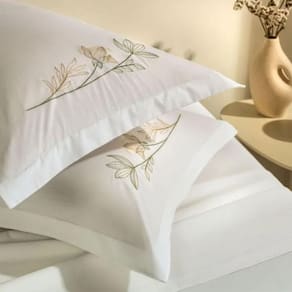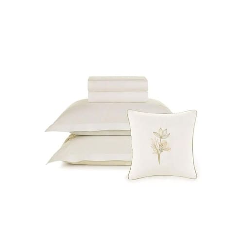 Jogo Cama King + Capa de Almofada Lavínia 200 Fios Karsten Jogo de Cama King com Capa de Almofada 200 Fios 100% Algodão Lavínia Branco Descubra o Jogo de Cama Lavínia King 5 Peças, perfeito para proporcionar conforto ao seu quarto. Confeccionado em 100% algodão com 200 fios, este conjunto oferece uma experiência única: é antipilling, altamente respirável, bem encorpado e hipoalergênico. O jogo inclui um sobre lençol tinto de 2,90m x 2,50m com dobra feita e bainha de 3cm, um lençol com elástico tinto de 1,93m x 2,03m x 40cm que se ajusta perfeitamente ao colchão, duas fronhas tintas 50cm x 70cm com 3 abas de 4cm, e uma capa de almofada de 45cm x 45cm com bordado localizado e acabamento em cordonê nos 4 lados, conferindo um charme extra ao ambiente. Na cor branca com bordados, suas peças de tonalidade neutra harmonizam com diferentes estilos de decoração.
