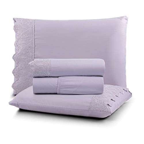 Jogo Cama king Cherry Bordado Inglês 4pç 100% Poliéster - Lilas - Lilás