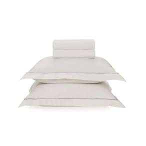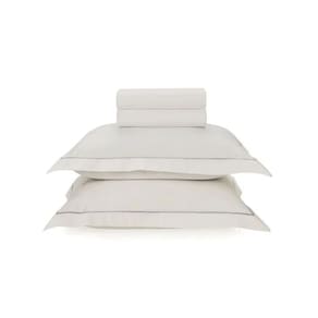 Jogo Cama King Deliz 100% Algodão Branco e Cinza Karsten Jogo de Cama King 200 Fios Percal 100% Algodão Deliz Branco/Cinza