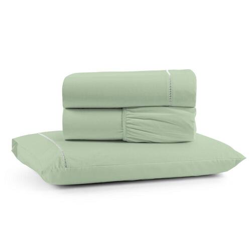 Jogo Cama Lençol Bali Solteiro Percal 180 Fios 100% Algodão Ponto Palito 3 Peças - Verde - Única