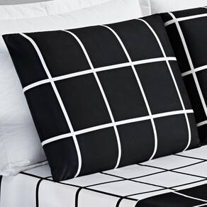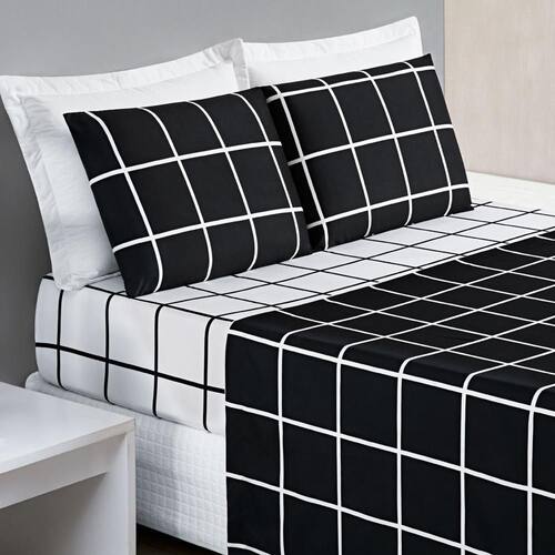 Jogo Cama Lençol Brooklyn Casal Quadriculado Micropercal 200 Fios 4 Peças - Preto