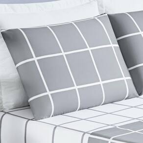 Jogo Cama Lençol Brooklyn Queen Quadriculado Micropercal 200 Fios 4 Peças - Cinza