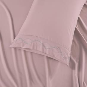 Experimente o conforto incomparável do Jogo de Lençol Merit, confeccionado em Percal de Poliéster 300 fios com toque de algodão, oferecendo uma maciez envolvente e duradoura. Esse conjunto é ideal para quem busca um acabamento sofisticado, destacando-se com um bordado exclusivo de coroa de louros, símbolo de vitória e distinção, que confere elegância ao seu ambiente.