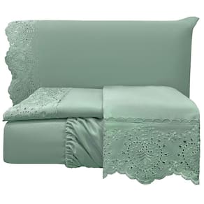 Jogo de Cama Lençol Casal Nupcial Percal 300 Fios 4 Peças - Verde