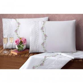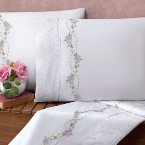 Uma das características marcantes desse jogo de cama são as suas lindas viras bordadas. As viras são detalhes ornamentais que conferem um toque de beleza e refinamento ao conjunto. Com suas bordas bordadas, o Jogo de Cama Holambra traz um estilo único e sofisticado para a decoração do quarto.