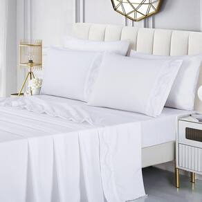 Jogo de Cama Lençol Casal Romantico Percal 300 Fios 4 Peças - Branco Lençol Romantico Bordado Tecido Toque de Algodão Transforme sua noite em um momento ainda mais especial com o nosso Lençol Romantico Bordado. Confeccionado com um tecido de toque suave de algodão, proporciona uma sensação de conforto e frescor incomparáveis.