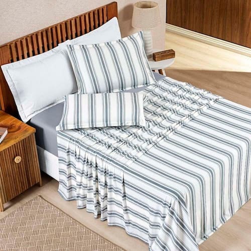 Apresentamos o jogo de lençol dos seus sonhos, confeccionado com o mais puro algodão e atenção meticulosa aos detalhes.
