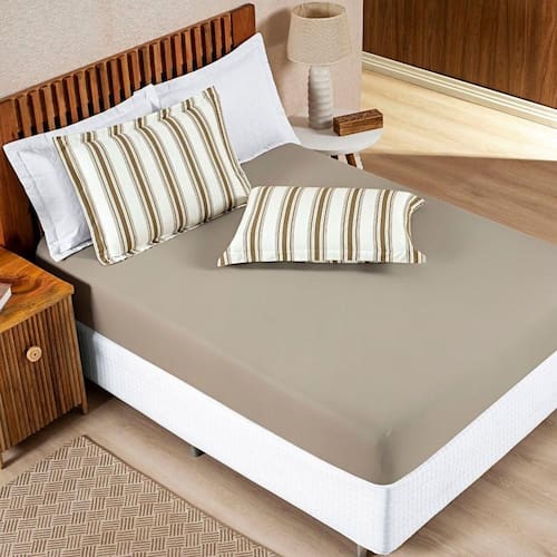 Apresentamos o jogo de lençol dos seus sonhos, confeccionado com o mais puro algodão e atenção meticulosa aos detalhes.