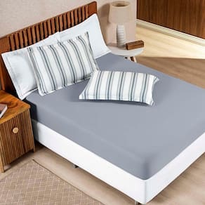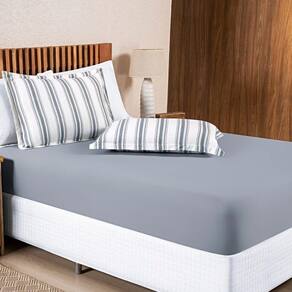 Jogo Cama Lençol Daily Solteiro Malha 100% Algodão Listrado 2 Peças - Cinza