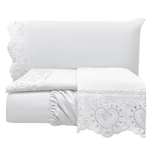 Detalhes: Bordado inglês elegante para um visual clássico.