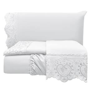 Jogo Cama Lençol Detail King Bordado Guipir Bordado Inglês Percal 300 Fios 4 Peças - Branco O Jogo de Cama Lençol Detail é a escolha perfeita para quem busca elegância e conforto em cada detalhe. Feito em Percal de Poliéster 300 Fios, traz a suavidade e o toque acolhedor de algodão para noites de sono agradáveis e revigorantes. Seu design sofisticado com bordado inglês adiciona charme ao quarto, elevando a decoração com um toque clássico. Além disso, o lençol de baixo com elástico garante um ajuste perfeito ao colchão, proporcionando praticidade e durabilidade. Transforme seu quarto em um ambiente aconchegante e sofisticado com o Jogo de Cama Detail