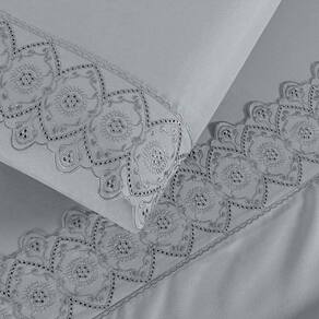 O bordado inglês meticulosamente trabalhado adiciona um toque artesanal, elevando a estética do conjunto e conferindo-lhe um charme atemporal. Cada detalhe é uma expressão de excelência, desde o padrão do bordado até a escolha cuidadosa dos materiais.