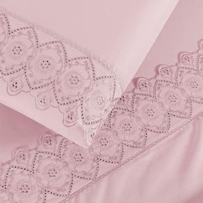 O bordado inglês meticulosamente trabalhado adiciona um toque artesanal, elevando a estética do conjunto e conferindo-lhe um charme atemporal. Cada detalhe é uma expressão de excelência, desde o padrão do bordado até a escolha cuidadosa dos materiais.