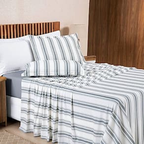 Nossos jogos de cama são confeccionados com o mais puro algodão, garantindo uma sensação aconchegante e respirável durante todas as estações do ano. A malha de alta qualidade confere uma textura suave e durável, proporcionando um toque macio à sua pele.