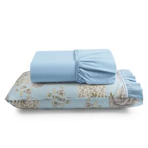 Jogo Cama Lençol Fiore Solteiro Estampado 180 Fios 100% Algodão com Babadinho 2 Peças Azul Floral - Única