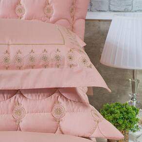 Jogo Cama Lençol Garland Casal Bordado 100% Algodão Acetinado 400 Fios 4 Peças - Rosê E Fendi - Blush