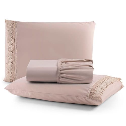 Envolva-se em um abraço de puro luxo com o nosso Lençol Haia com Detalhes de Guipir ou Bordado Inglês, confeccionado em tecido percal 200 fios 100% algodão. A maciez incomparável do percal, combinada com a elegância dos detalhes em guipir ou bordado inglês, transforma o seu quarto em um refúgio de sofisticação e conforto.
