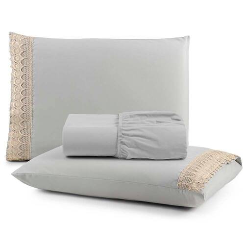 Envolva-se em um abraço de puro luxo com o nosso Lençol Haia com Detalhes de Guipir ou Bordado Inglês, confeccionado em tecido percal 200 fios 100% algodão. A maciez incomparável do percal, combinada com a elegância dos detalhes em guipir ou bordado inglês, transforma o seu quarto em um refúgio de sofisticação e conforto.
