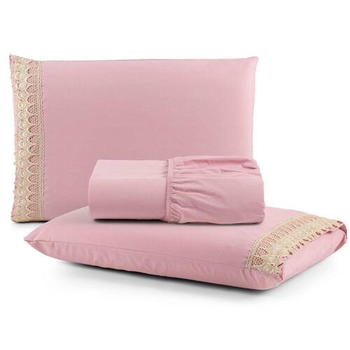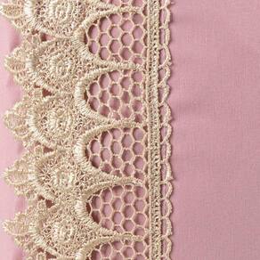 Jogo Cama Lençol Haia Queen Percal 200 Fios 100% Algodão Guipir Bordado Inglês 3 Peças - Rosê - Única