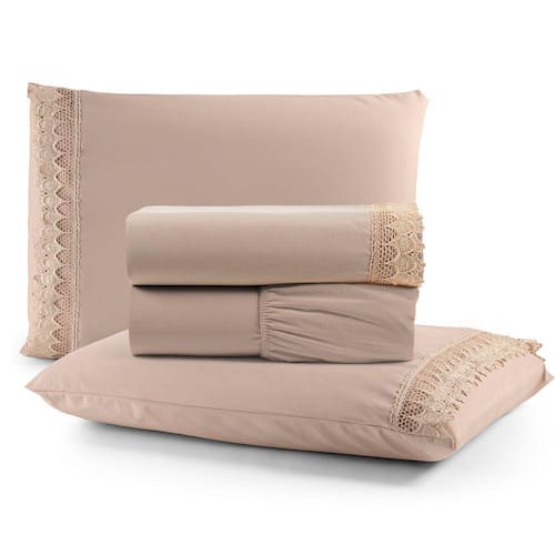 Envolva-se em um abraço de puro luxo com o nosso Lençol Haia com Detalhes de Guipir ou Bordado Inglês, confeccionado em tecido percal 200 fios 100% algodão. A maciez incomparável do percal, combinada com a elegância dos detalhes em guipir ou bordado inglês, transforma o seu quarto em um refúgio de sofisticação e conforto.