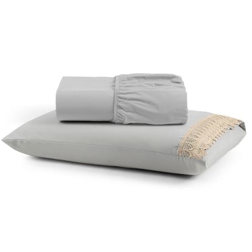 Envolva-se em um abraço de puro luxo com o nosso Lençol Haia com Detalhes de Guipir ou Bordado Inglês, confeccionado em tecido percal 200 fios 100% algodão. A maciez incomparável do percal, combinada com a elegância dos detalhes em guipir ou bordado inglês, transforma o seu quarto em um refúgio de sofisticação e conforto.