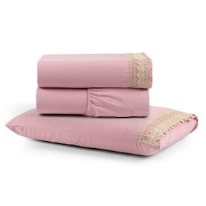 Jogo Cama Lençol Haia Solteiro Percal 200 Fios 100% Algodão Guipir Bordado Inglês 3 Peças - Rosê - Única