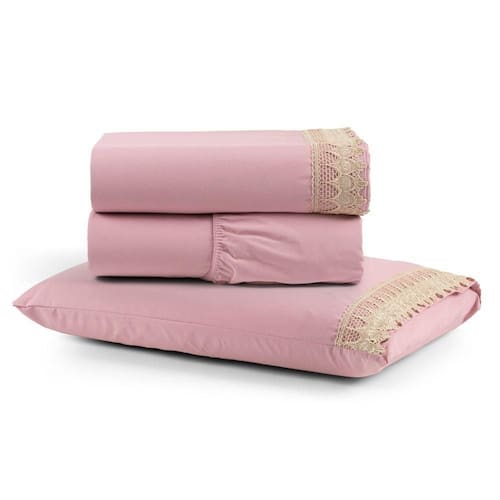 Jogo Cama Lençol Haia Solteiro Percal 200 Fios 100% Algodão Guipir Bordado Inglês 3 Peças - Rosê