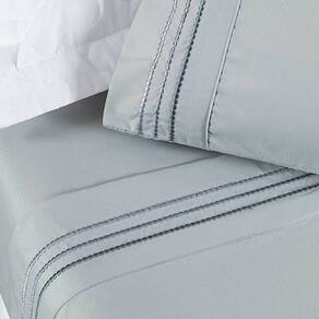 Jogo Cama Lençol Honore Casal Padrão Micro Percal 200 Fios c/ Detalhes Bordados 4 Peças - Cinza Geada - Única