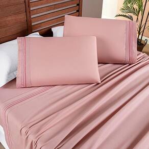 Jogo Cama Lençol Honore Casal Padrão Micro Percal 200 Fios C/ Detalhes Bordados 4 Peças - Sal Rosa