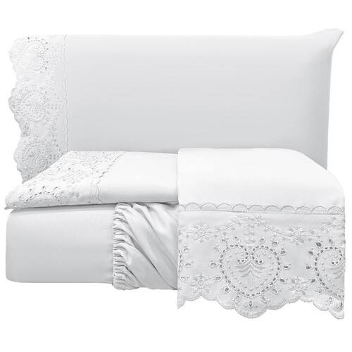 Jogo de Cama Lençol King Nupcial Percal 300 Fios 4 Peças - Branco Lençol Nupcial Bordado Tecido Toque de AlgodãoTransforme sua noite de núpcias em um momento ainda mais especial com o nosso Lençol Nupcial Bordado. Confeccionado com um tecido de toque suave de algodão, proporciona uma sensação de conforto e frescor incomparáveis.