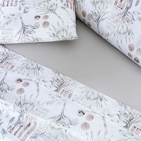 Com estampas encantadoras que harmonizam perfeitamente, o Jogo Maris traz um toque especial de delicadeza, criando um ambiente acolhedor e cheio de charme no quarto.