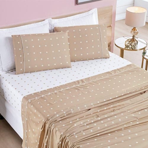 Apostando no simples e clássico a Coleção Meggy Poá traz como protagonista as bolinhas, um verdadeiro charme para decoração seu quarto. Confeccionadas em Micropercal 200 Fios proporciona um toque suave e extremo conforto para suas noites de sono. Inspire-se