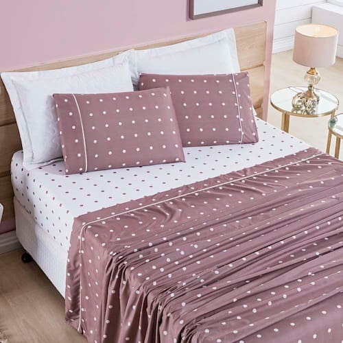 Apostando no simples e clássico a Coleção Meggy Poá traz como protagonista as bolinhas, um verdadeiro charme para decoração seu quarto. Confeccionadas em Micropercal 200 Fios proporciona um toque suave e extremo conforto para suas noites de sono. Inspire-se