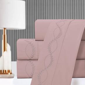 Jogo Cama Lençol Merit King Bordado Coroa de Louros Percal 300 Fios 4 Peças - Roxo Malva